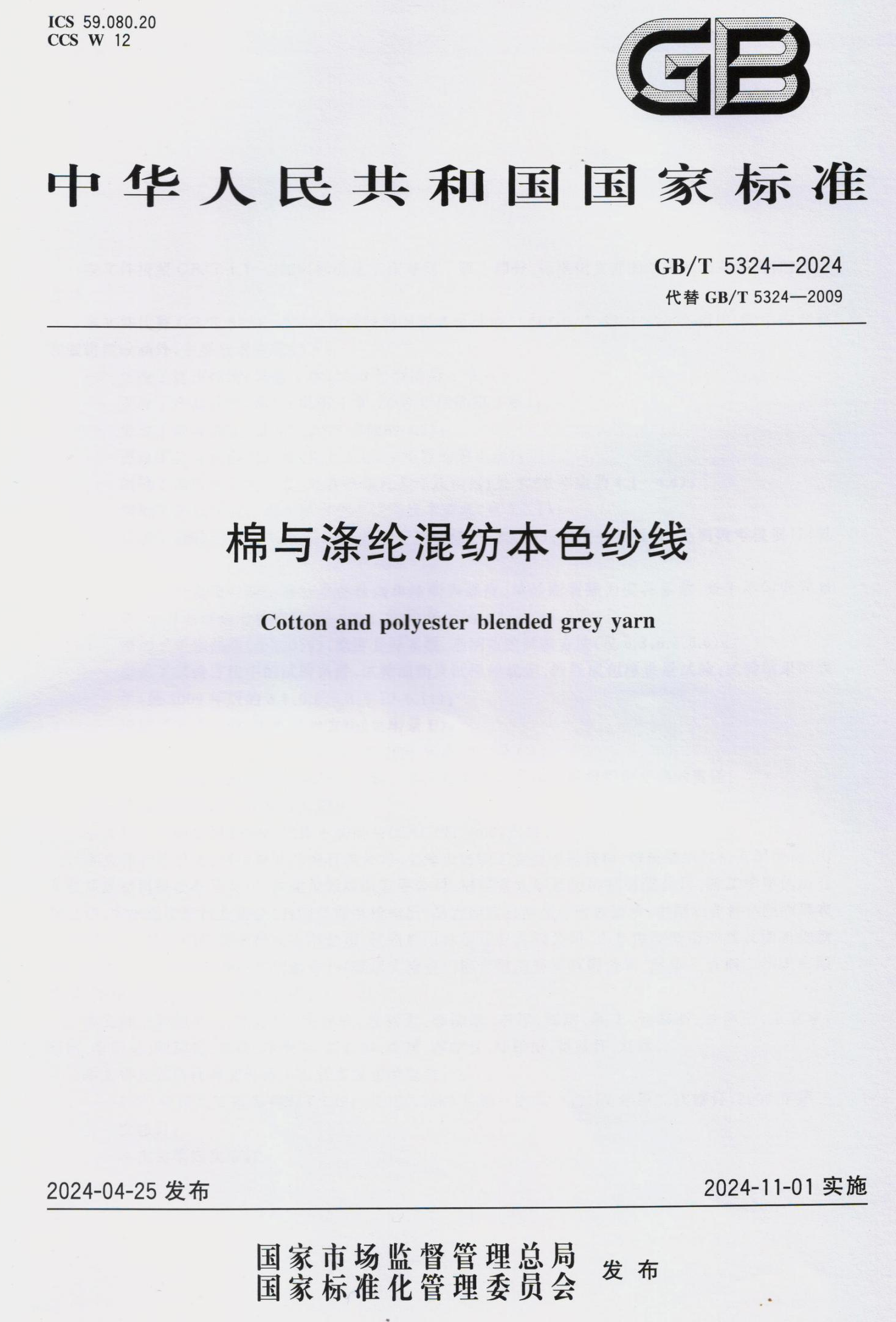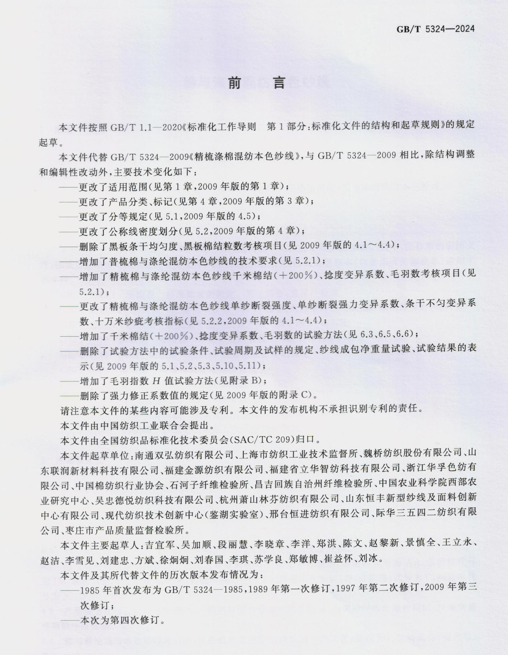 জাতীয় স্ট্যান্ডার্ড জিবি/টি 5324-2024 "সুতি এবং পলিয়েস্টার মিশ্রিত প্রাকৃতিক সুতা" ডাবল দুর্দান্ত সংস্থা দ্বারা খসড়া আনুষ্ঠানিকভাবে 1 নভেম্বর, 2024 এ প্রয়োগ করা হবে।