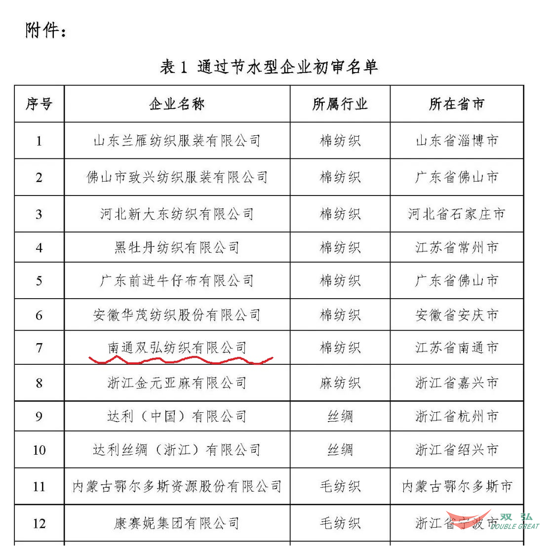 25 জুলাই, চীন টেক্সটাইল ইন্ডাস্ট্রি ফেডারেশনের অফিসিয়াল ওয়েবসাইট থেকে খবর এসেছে যে ন্যান্টং ডাবল গ্রেট টেক্সটাইল কো, লিমিটেডকে টেক্সটাইল শিল্পে 2022 জল-সঞ্চয়কারী উদ্যোগে ভূষিত করা হয়েছিল। এই সম্মানটি গ্রহণ করা ন্যান্টংয়ের একমাত্র সুতির স্পিনিং এন্টারপ্রাইজ।